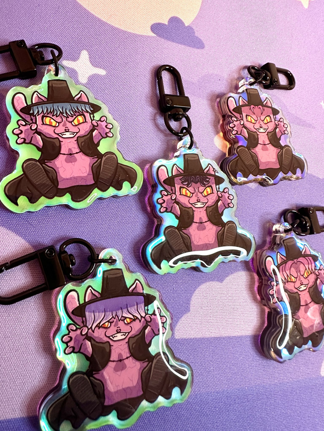 Discover our exclusive Saja Boys keychains, designed to stand out wherever you go. Made from holographic acrylic, each piece shines with a unique effect that changes with the light. They also feature an epoxy resin coating that protects the design, ensuring greater strength and durability. Approximate size: 5cm.